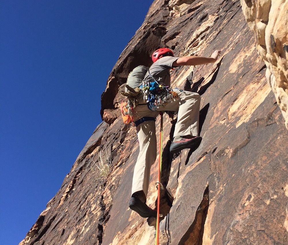 The versatility of the Maxim Pinnacle Yellow Jacket being demonstrated on a multi-pitch climb in Zion National Park, Utah.