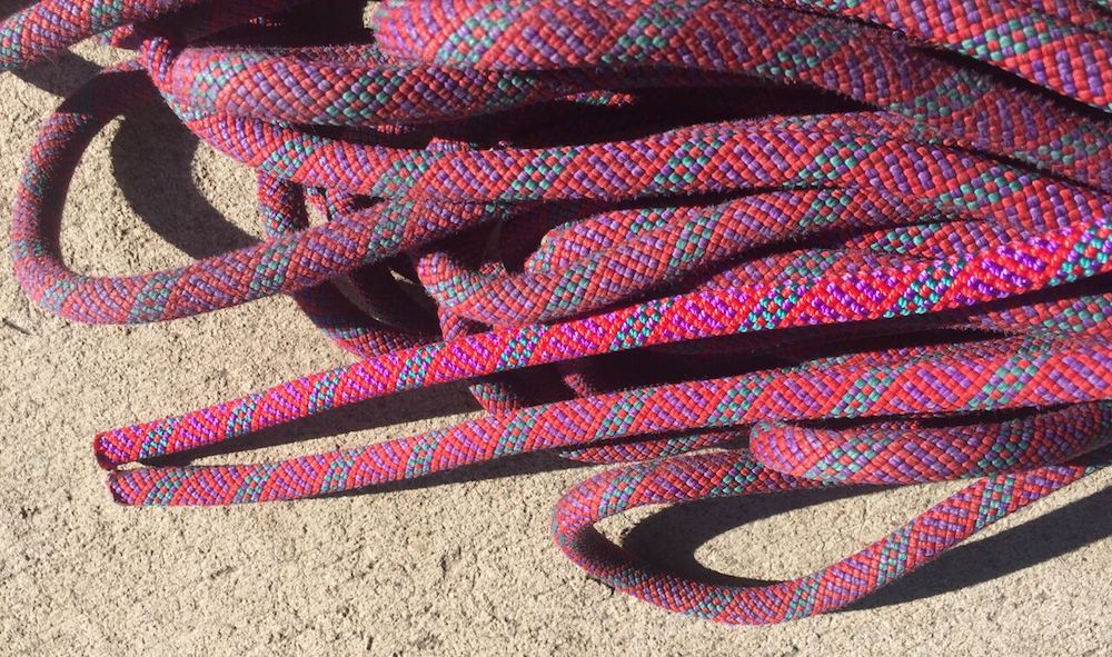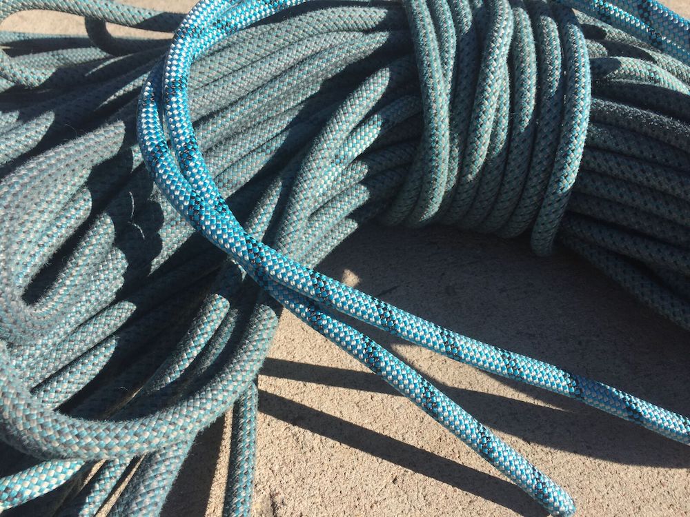 A section of new rope next to the well used Mammut Infinity, whose sheath held up well to wear and tear and good handling stayed relatively intact.