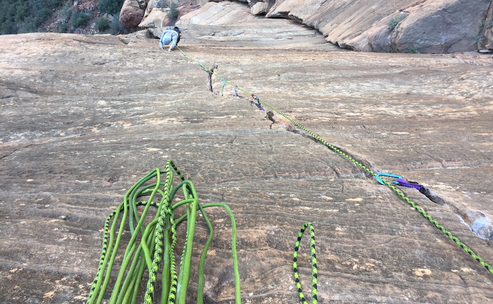 Putting ropes to the test in the field, the Petzl Arial and Mammut Infinity while guiding a multi-pitch climb in Red Rock, outside Las Vegas.