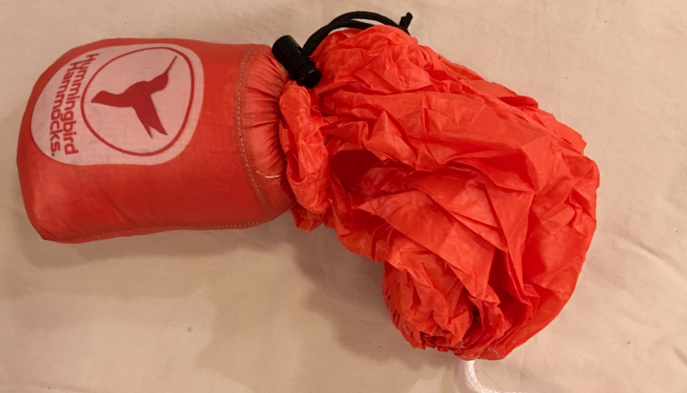 Our tester’s ultimate combination would be: soft, comfortable fabric; a simple carabiner-and-webbing suspension system that isn’t over-engineered, and has reflective threads in the webbing; a rain fly that’s ready to go out of the bag, complete with reflective cords and cord adjusters; a stuff sack/gear pouch that’s attached in the middle of the hammock; and, for the love of all that is holy, stuff sacks that aren’t so small that repacking is a thumb-breaking chore.