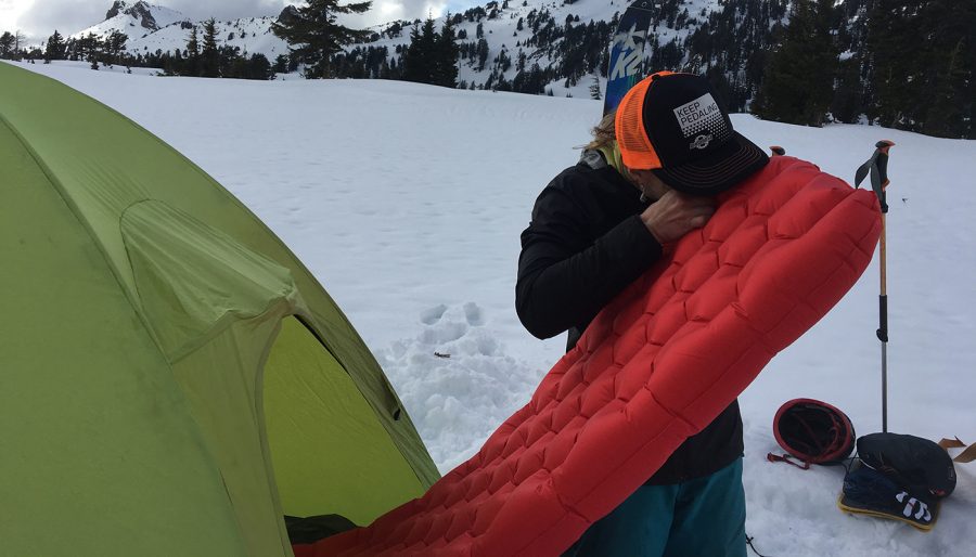 We tested the Big Agnes Axl Air on an overnight ski tour up Mt. Lassen, and we very disappointed. It did not keep us warm or insulate properly between the snow and the body.