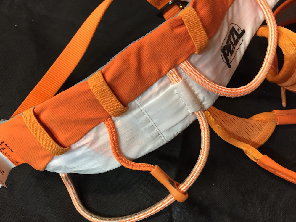 Gear loops are a big part of harnesses today because gear is what’s used on every climb and manufacturers continue to develop ways of making it easier to access that gear. On harnesses of the past, climbers may have found just a couple of gear loops, constructed from a simple nylon cord and maybe with a piece of plastic tubing over it to help it protrude from the harness. Today, gear loops can be contoured and shaped in a way to help the stick out from the harness, easing access to gear. Two gear loops would be rare today and instead you’ll find four or five gear loops. The Petzl Sitta even includes a movable divider on the front gear loops to further help organization.