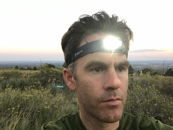 It’s not the brightest light on the trail, but trail running downhill on a technical trail after dusk, I felt like I had just about all the light I needed. The slim light doesn’t bounce around on your forehead, which is essential for a running light. It’s also easy to rotate the light down towards your feet when needed—the slim light swings out from its housing on a tiny hinge.