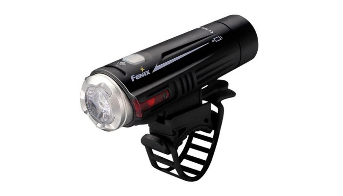 #1: Fenix BC21R ($96): Projecting a bright, broad beam of 880 lumens, the Fenix BC21R is all about extending the ride time. It comes with a spare rechargeable lithium-ion battery and a power-saving feature called Intelligent Output Downshift that automatically shifts the light down to a lower setting. Its five brightness modes of Turbo (880 lumens), High (380 lumens), Medium (200 lumens), Low (100 lumens) and Flash (alternating 380 lumens and 100 lumens) are accessed with a glove-friendly on/off button that glows in the dark.