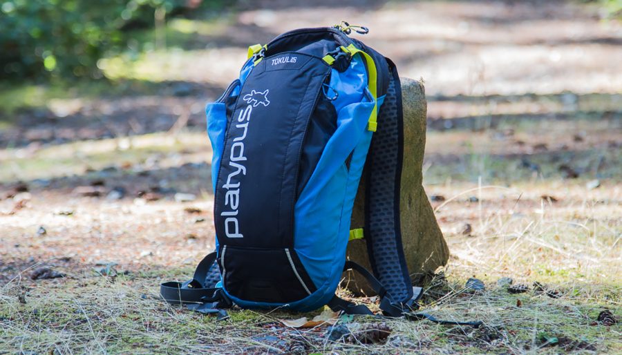 The Patagonia Nine Trails is a simple pack that can do a variety of sports. The flexible back panel is covered with perforated foam and a mono-filament mesh that doesn’t hold moisture. The main pocket holds the bladder and gear, while a slightly smaller front pocket holds tools and a bit more gear.