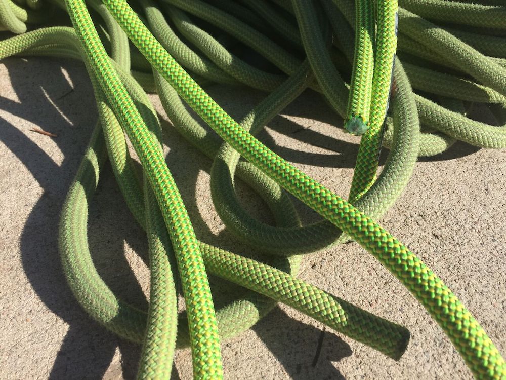 A section of new rope next to the well used Mammut Infinity, whose sheath held up well to wear and tear and good handling stayed relatively intact.