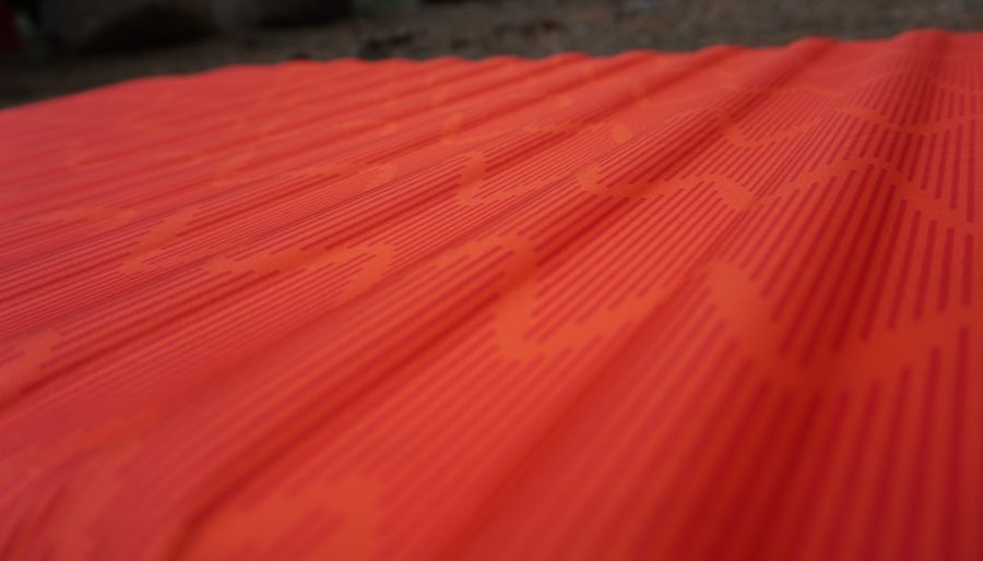 The slightly ridged surface of the self-inflating Therm-a-Rest ProLite Apex. This pad is firm-yet-cushioned and stable, it ended up being one of our favorites in terms of comfort and support.