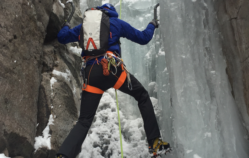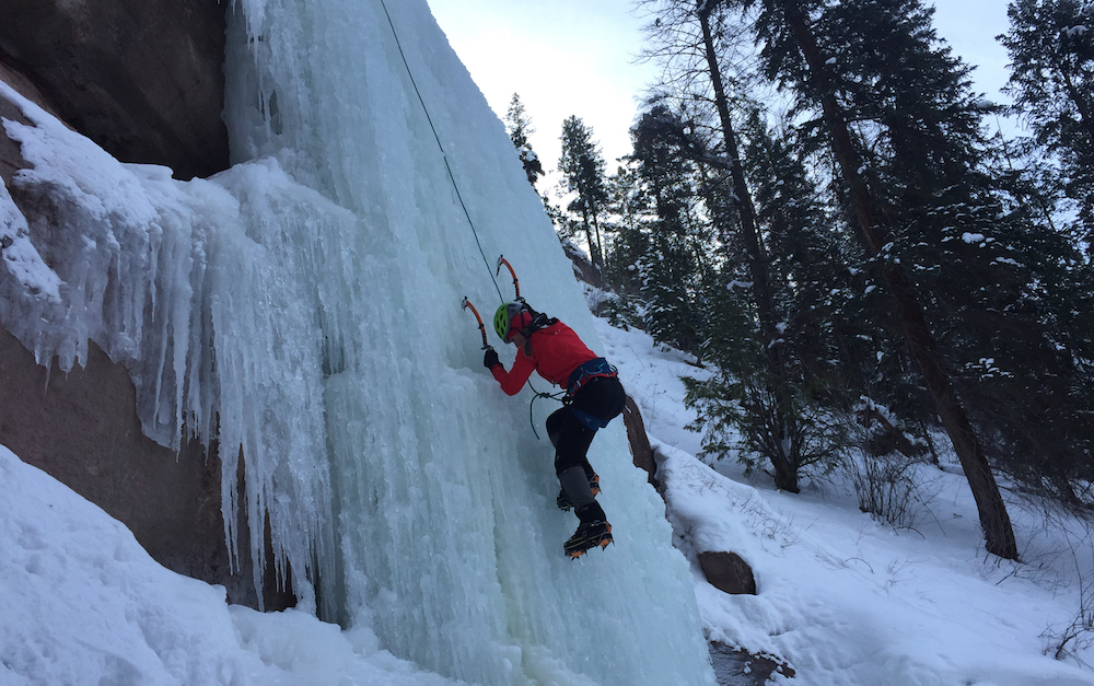 Field testing the Petzl Sitta on an ice climb in Ouray, Colorado.