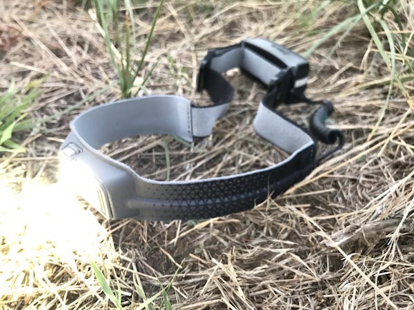 The other big problem is the slipperiness of the band itself. The fabric is slick, almost slippery, and so if you are, say, running downhill, the light slips down on the back of your head and down towards your eyes. You have to tighten it beyond what’s comfortable to have it stay put. Not good. And while navigating the light settings and dimmer with one button is fairly intuitive, that button is so small it’s hard to find—and good luck if you’re wearing gloves.