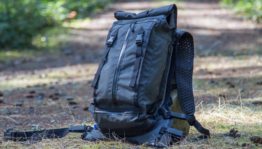 Larger and heavier than other packs in this test, the Mission Workshop Hauser is in a bit of a category of its own. Solid weatherproofing makes this our pick for the Best Pack for Wet Weather. The large main pocket has Velcro-latched roll-top but can also be folded over and clipped closed. Behind the main pocket, one waterproof zipper folds open the entire bag for easy access to the reservoir.