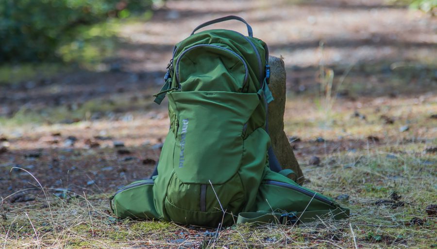 The Patagonia Nine Trails is a simple pack that can do a variety of sports. The flexible back panel is covered with perforated foam and a mono-filament mesh that doesn’t hold moisture. The main pocket holds the bladder and gear, while a slightly smaller front pocket holds tools and a bit more gear.