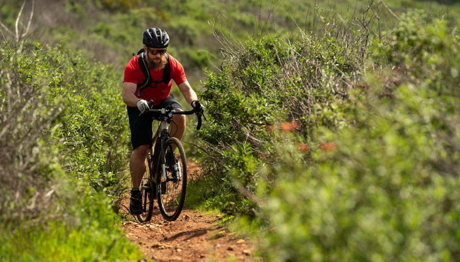 The small tires, high PSI and rigid fork up front took some getting used to. You get to feel every drop and rock in rough terrain. One trail we rode that was more fist-sized rock than dirt had me wishing for some suspension up front.
